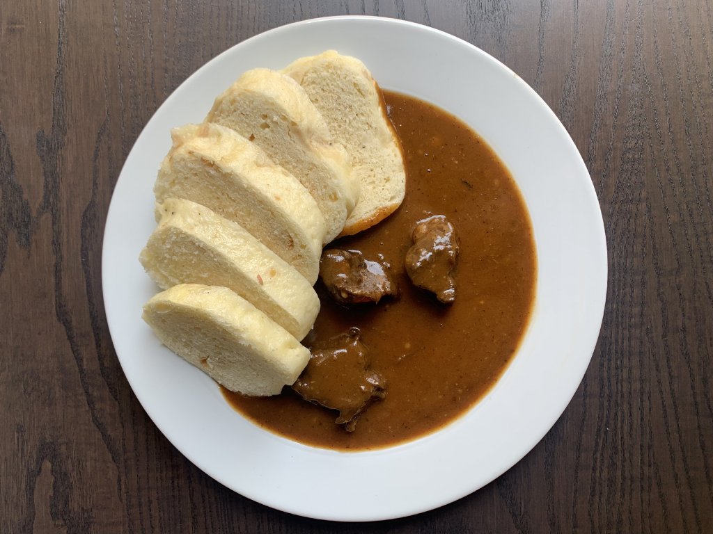Guláš z hovězí kližky, 100 g, houskové knedlíky